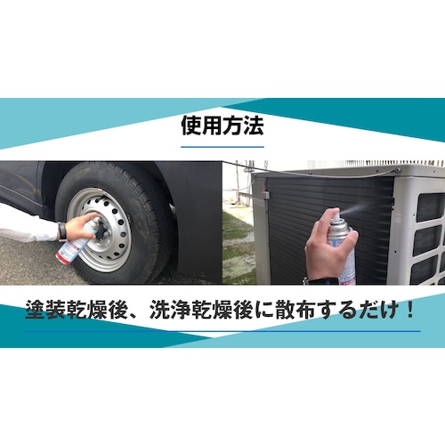 エアコン室外機を汚れや塩害・腐食から守り、アルミフィン洗浄後の白粉(錆)防止にも優れた効果を発揮します。