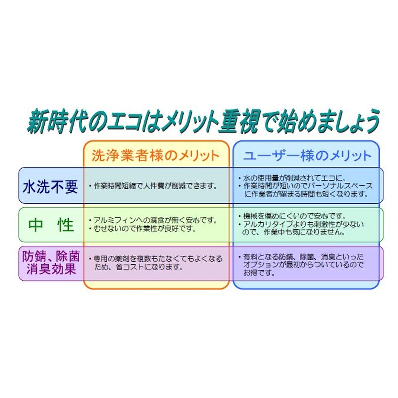 中性タイプで最高レベルの洗浄力!中性タイプのアルミフィン洗浄剤で最高レベルの洗浄力を有し、タバコのヤニ汚れや油汚れ等も綺麗に洗浄できます。
