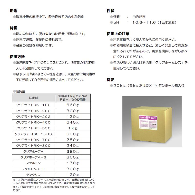 RS-100 酸洗浄剤の粉末中和剤 クリアバランス