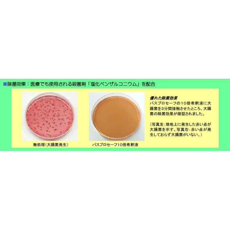 医療でも使用されている安全性の高い殺菌剤(塩化ベンザルコニウム)を配合しており、浴室内を安全・清潔に保ちます。