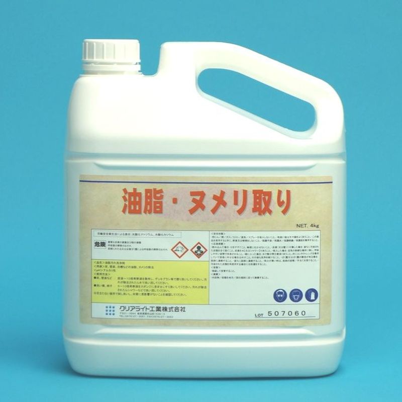 浴槽、床、洗い桶、椅子等の油脂汚れ、ヌメリを除去する万能洗浄剤